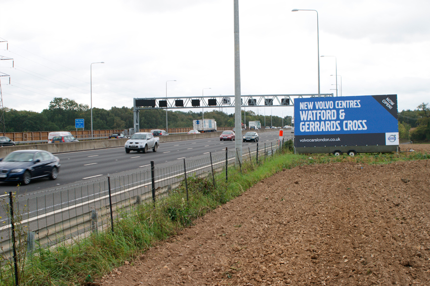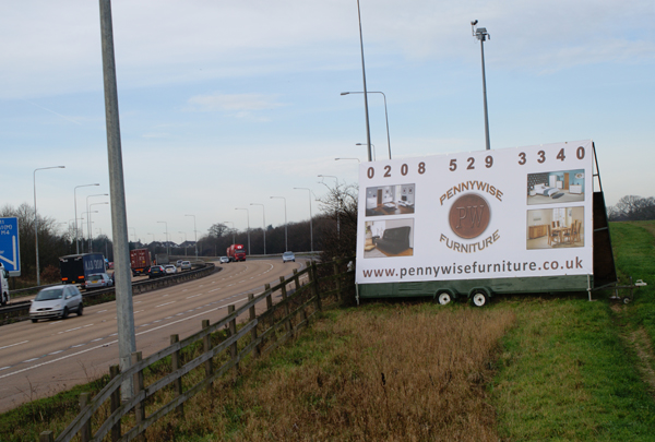 Each day, tens of thousands of motorists will pass, notice and read your advertisement. One single advert banner placed alongside one of the busy major M and A roads in South East of England can average 4.5 million drive pasts per month!